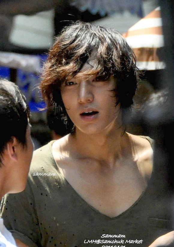 | Lee Min Ho trông hơi luộm thuộm với mái tóc dài thượt và chiếc áo nhàu nhĩ. |