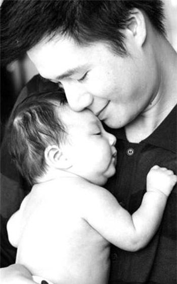 | Ông bố Quang Dũng hạnh phúc đặt nụ hôn lên trán của cậu con trai đầu lòng Bảo Nam. |