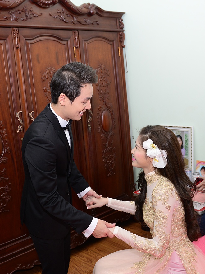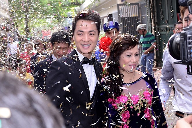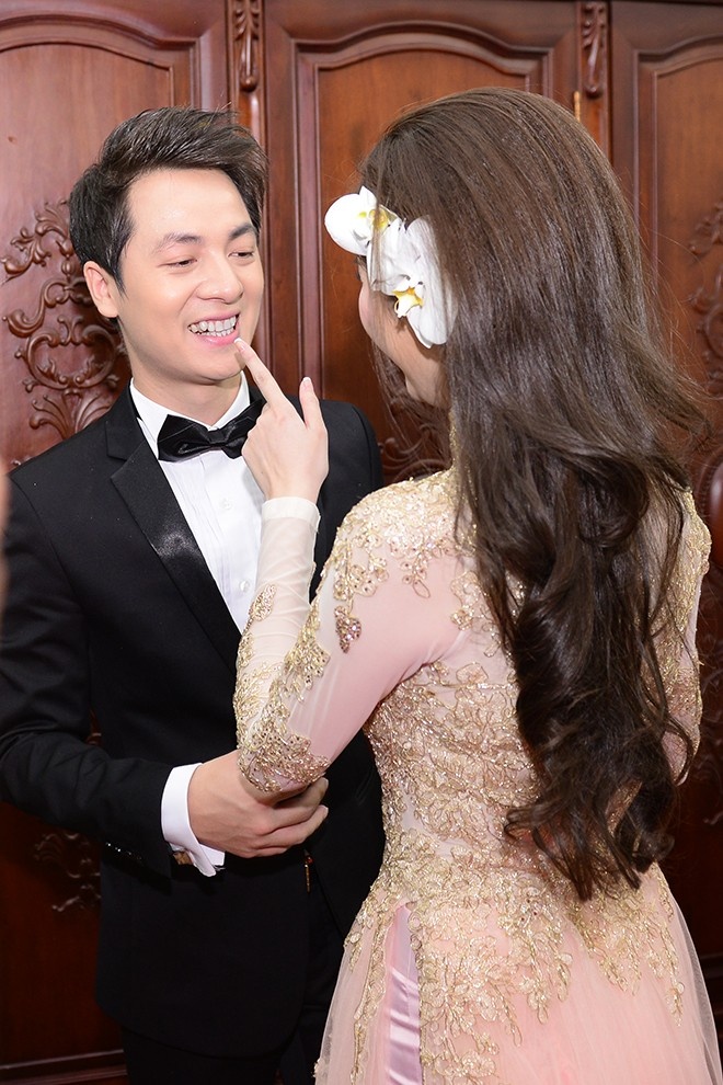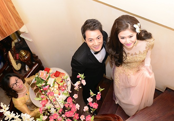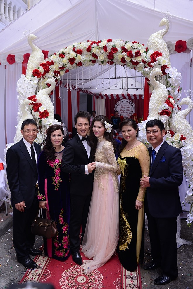 | Đôi trai tài gái sắc nhận được nhiều lời chúc phúc từ họ hàng hai bên. Sau đám cưới ở Hà Nội, cả hai sẽ tổ chức lễ Hằng thuận theo truyền thống của đạo Phật tại một ngôi chùa lớn ở TP.HCM. |