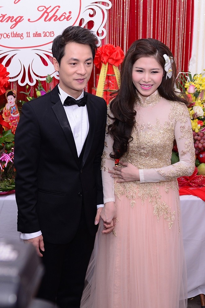 | Thủy Anh e ấp bên chồng. Đăng Khôi luôn nắm chặt tay vợ. Anh từng chia sẻ mình là người có đủ bản lĩnh để làm vợ con, gia đình hạnh phúc. Chính bởi vậy, nam ca sĩ mới thuyết phục được gia đình Thủy Anh đồng ý để cô Nam tiến lập nghiệp cùng mình. |