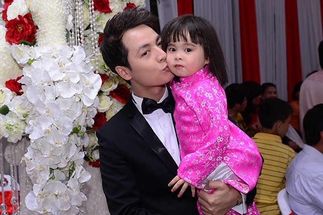 | Đăng Khôi âu yếm cô cháu gái là con đầu lòng của em trai Đăng Nguyên. |