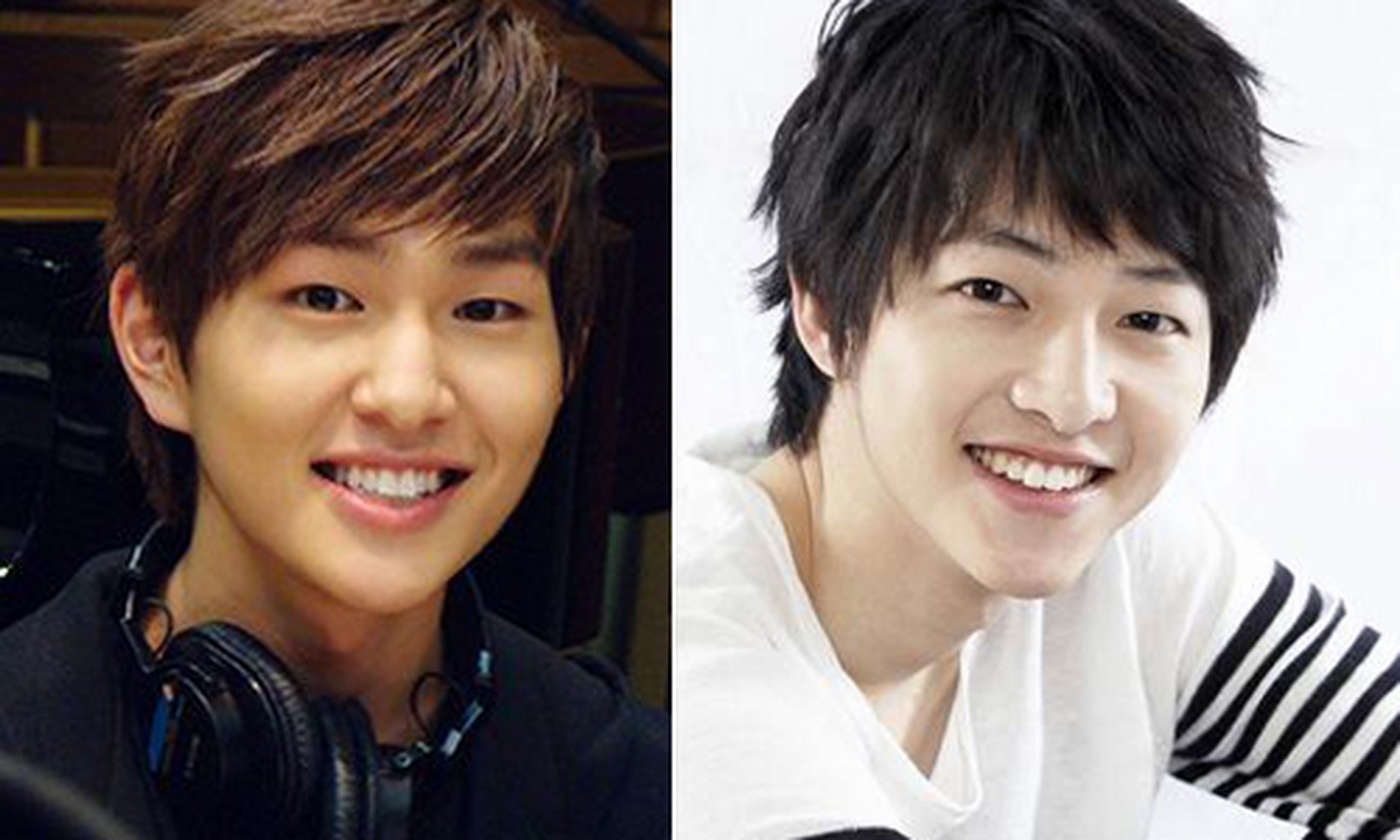 Hai chàng trai Onew (SHINee) và Song Joong Ki. Hiện tại, khán giả màn ảnh nhỏ phải tạm “rời xa” “hoàng tử nục cười” khoảng 2 năm vì anh đang trong kì nhập ngũ của quân đội Hàn Quốc.