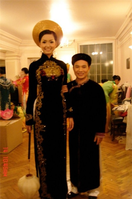 Nam ca sĩ Quang Linh trông thật nhỏ bé khi tạo dáng bên hoa hậu.