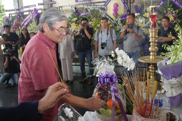 Trước giờ truy điệu, mọi người lần lượt đến thắp nén nhang cho ông.