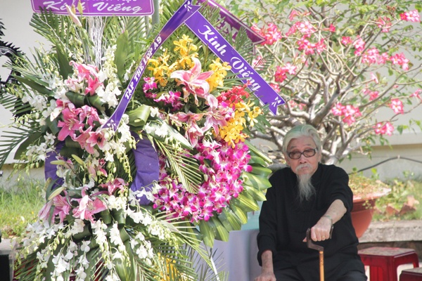 Nhạc sĩ Phan Nhân dù đã 85 tuổi vẫn gắng chạy xe đạp điện từ nhà riêng đến nhà tang lễ từ sáng. “Tôi muốn tới sớm, để gặp được nhiều bạn bè, chia sẻ những câu chuyện, kỉ niệm về Năm Sáng”, nhạc sĩ chia sẻ.