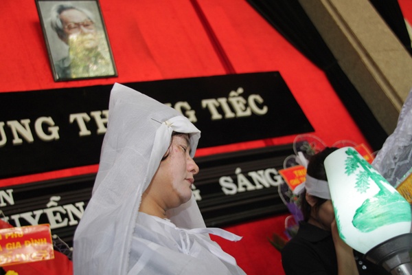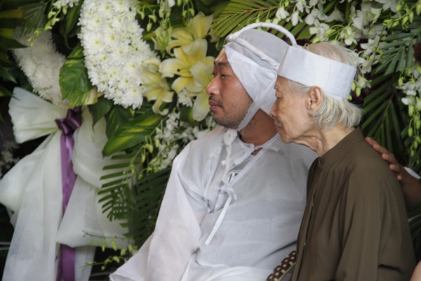 Anh buồn đau bên linh cữu người cha.
