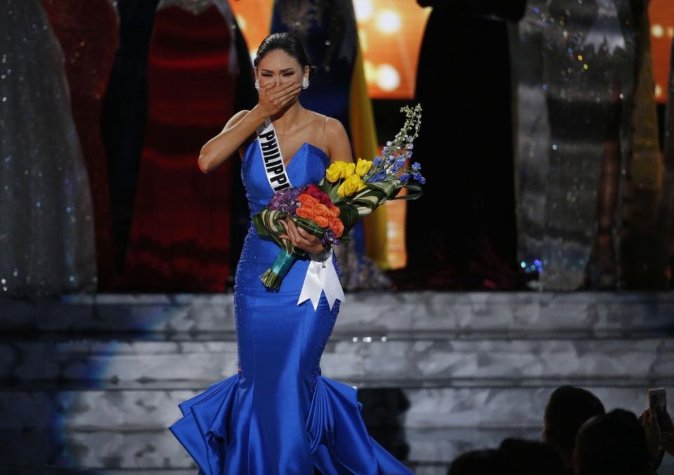 | Hoa hậu Philippines xúc động bước xuống sân khấu khi được MC thông báo là người chiến thắng. |