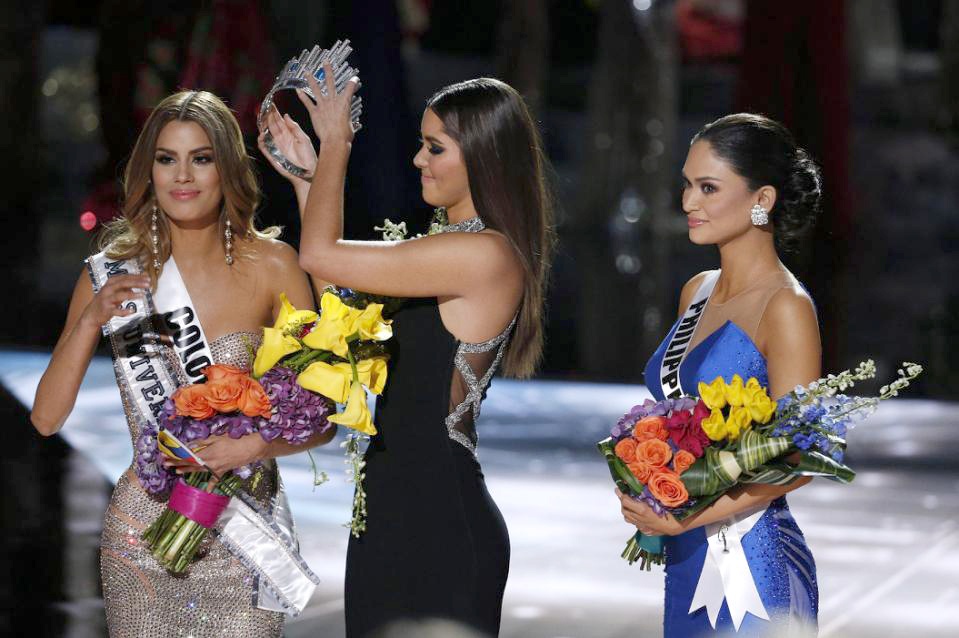 | Pia Wurtzbach đăng quang cuộc thi Hoa hậu Hoàn vũ 2015. |