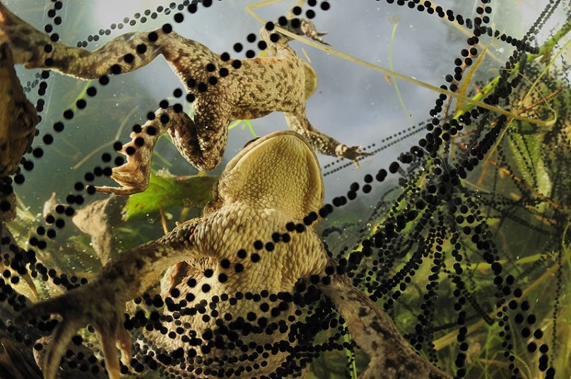 | Hai con ếch bảo vệ trứng ở Solling, Đức. (Ảnh: Solvin Zankl) |