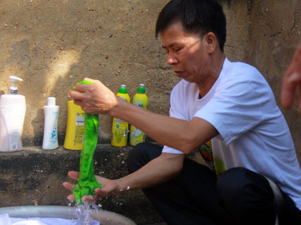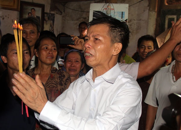 Tiếng khóc của cô con gái ông Chấn vang khắp gian nhà cấp 4 lụp xụp khiến nhiều người không cầm được nước mắt.