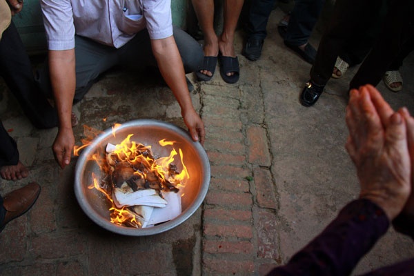 Theo tâm linh, người nhà ông Chấn đã đốt một số giấy tờ trước khi người đàn ông này bước vào cổng nhà.