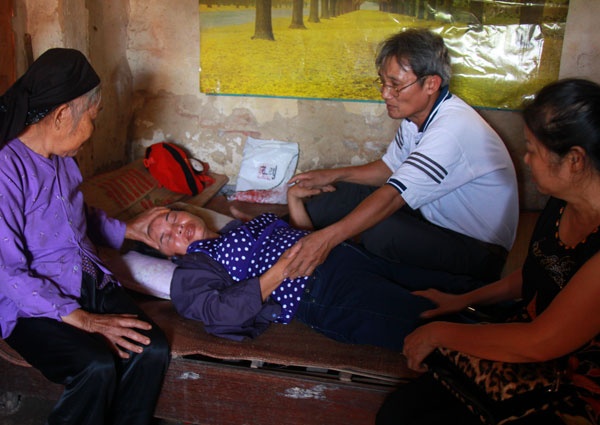 Bà Nguyễn Thị Chiến (48 tuổi, vợ Chấn) đã ngất lịm sau chặng đường đón chồng trở về.
