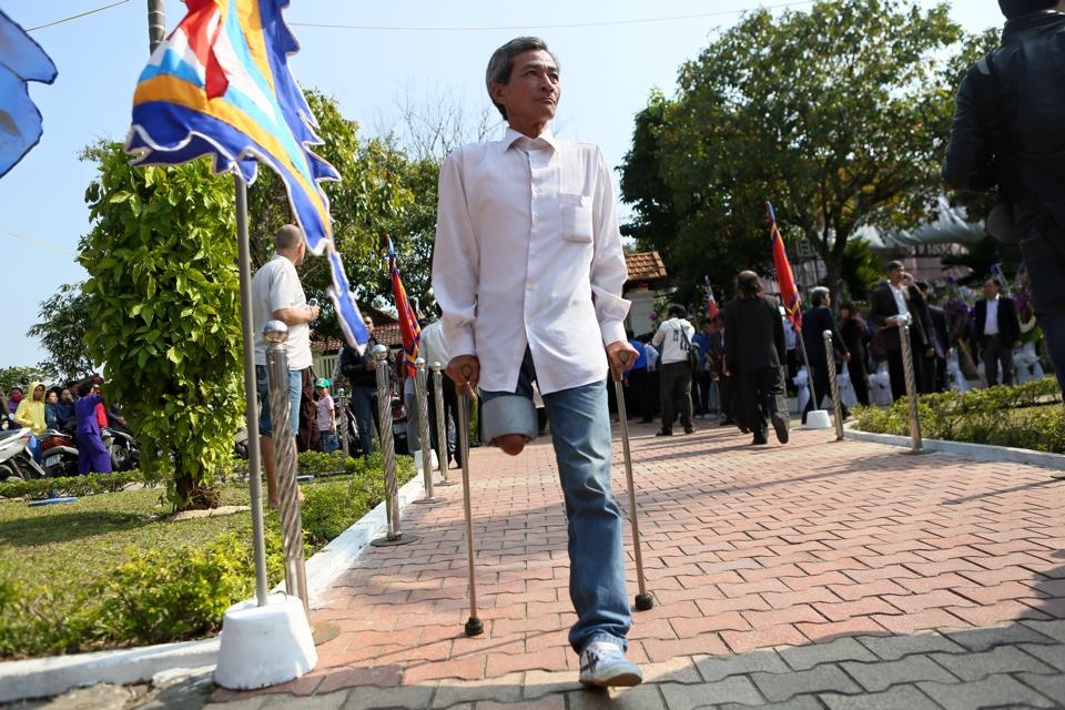 | Nhiều người dù đi lại khó khăn cũng mong mỏi được đến thắp nén nhang từ biệt. |
