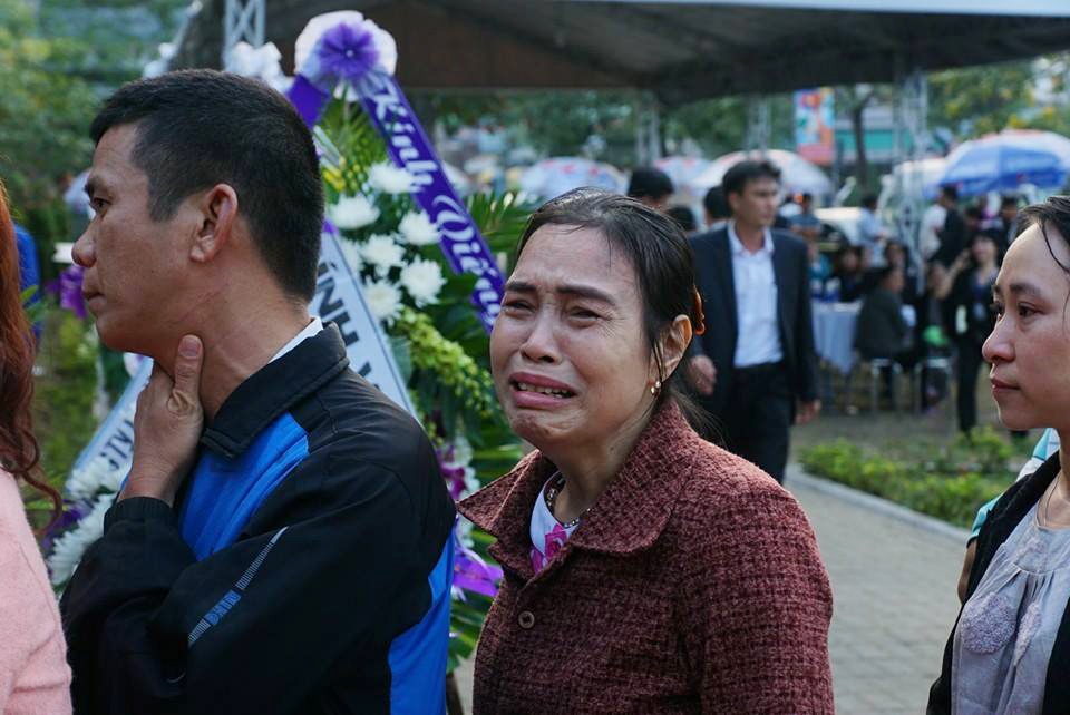 | Nước mắt đã rơi khi còn xếp hàng ngoài sân. |