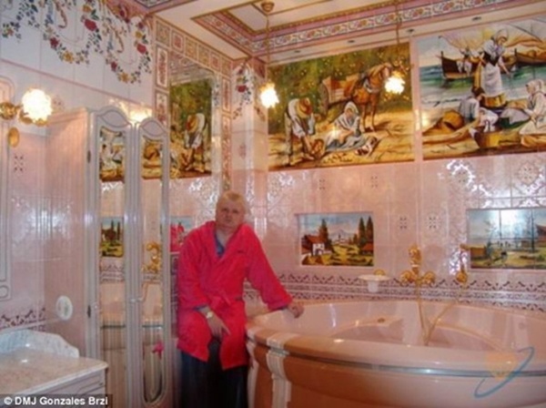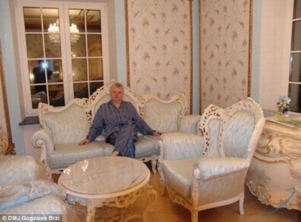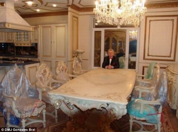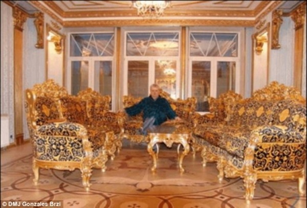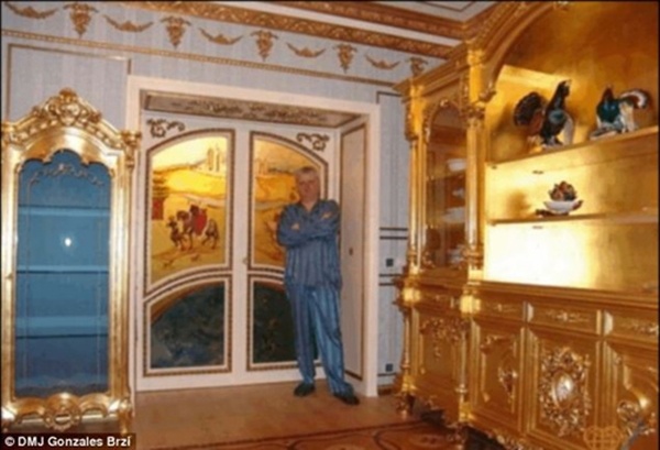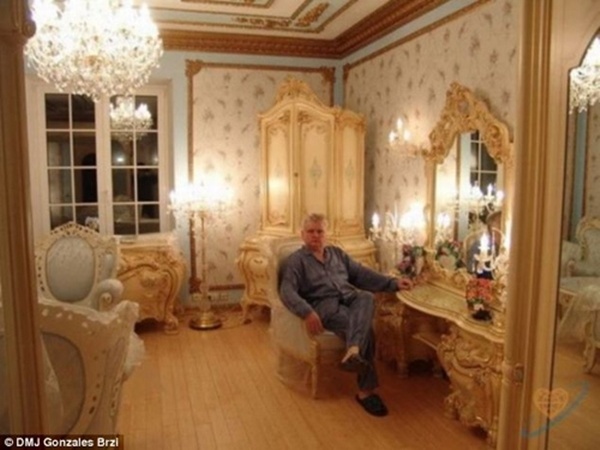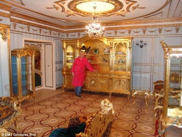 Nội thất mạ vàng của anh chàng độc thân giàu có không chỉ ở phòng khách hay phòng ngủ mà được trang trí vào tới tận phòng tắm. Một số đồ nội thất vẫn còn được bọc bên ngoài cho khỏi bụi bẩn, cũ kỹ. Don Milisav hiện đang sống tại St. Petersburg, Nga, mong muốn tìm được một người vợ trẻ từ 16-20 tuổi để sống với anh tới cuối đời trong ngôi nhà mạ vàng này.