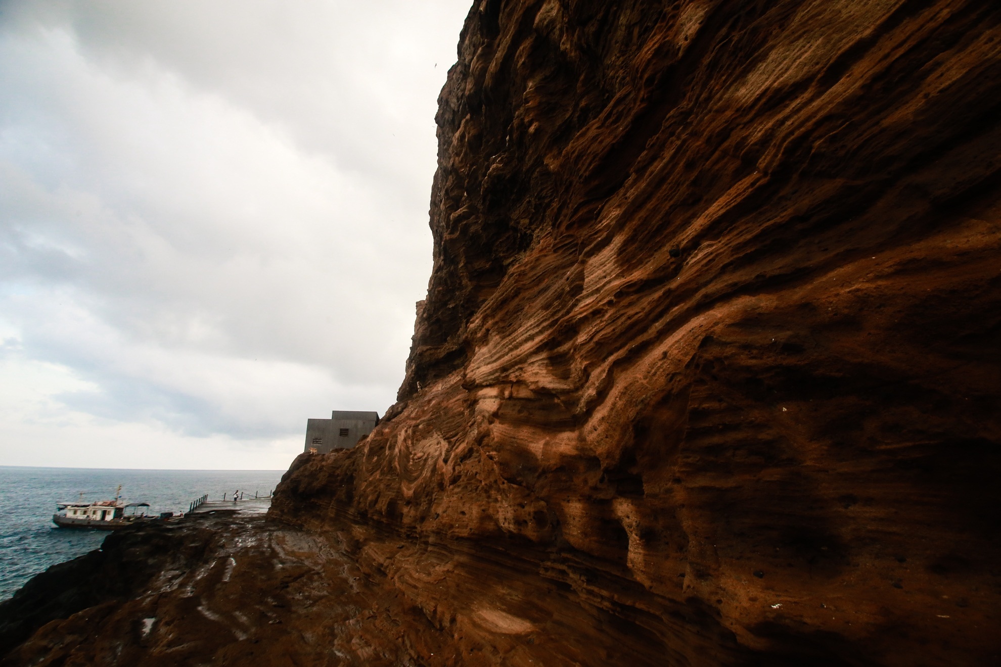 | Một trong những công trình đặc biệt tại đây là hệ thống đường hầm dài 170 m với 4 cửa thông lên mặt đảo. Hầm được gia cố bằng bê tông cốt thép chống đá rơi, dư chấn. Cửa hầm nằm ở mặt sau của tòa nhà rồi kéo dài lên bề mặt đảo bằng 370 bậc thang.