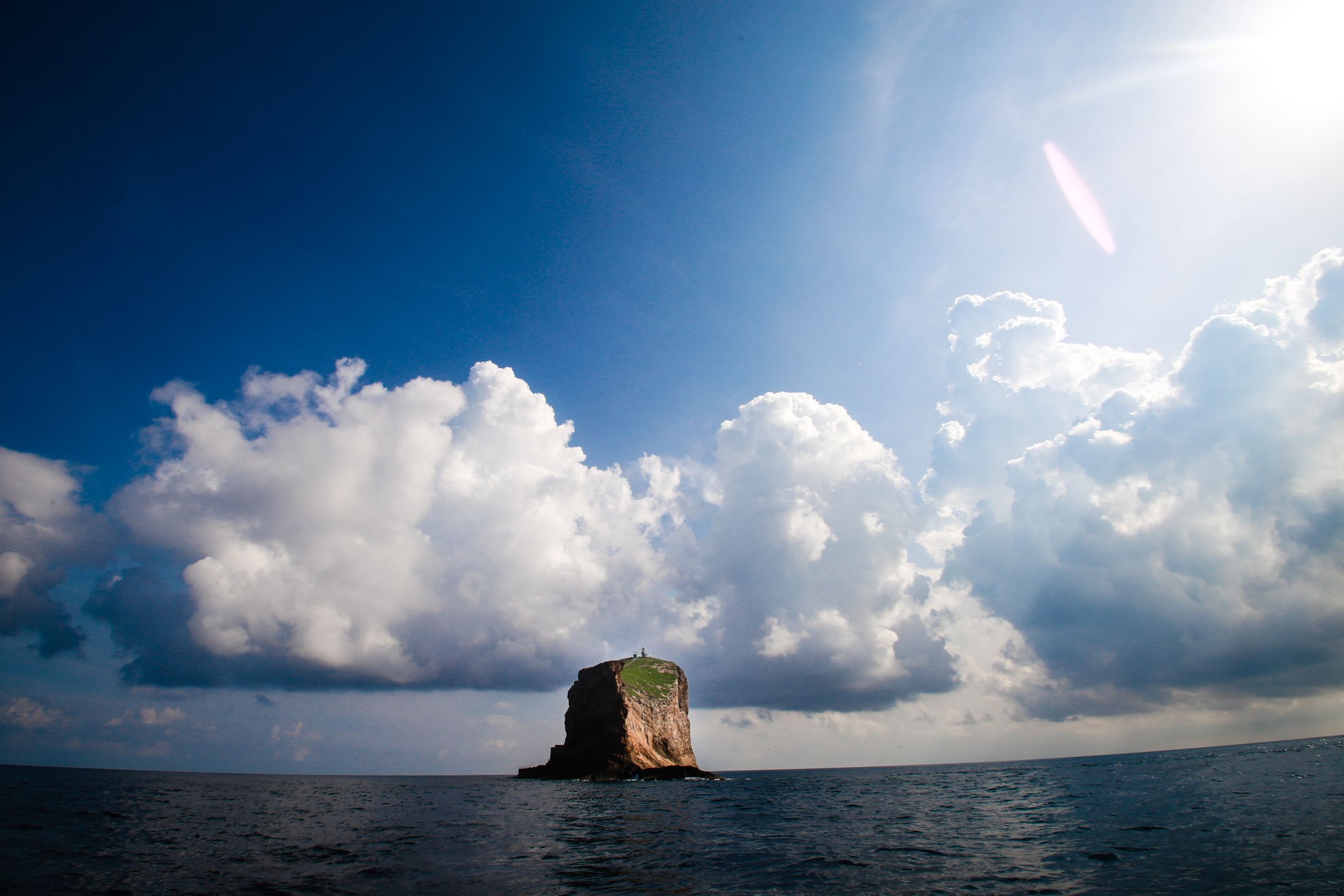 | Tùy theo từng góc độ của tàu khi đi trên biển mà Hòn Hải mang nhiều hình dạng thú vị khác nhau. Có vị trí nhìn như hình khối đá tròn. |