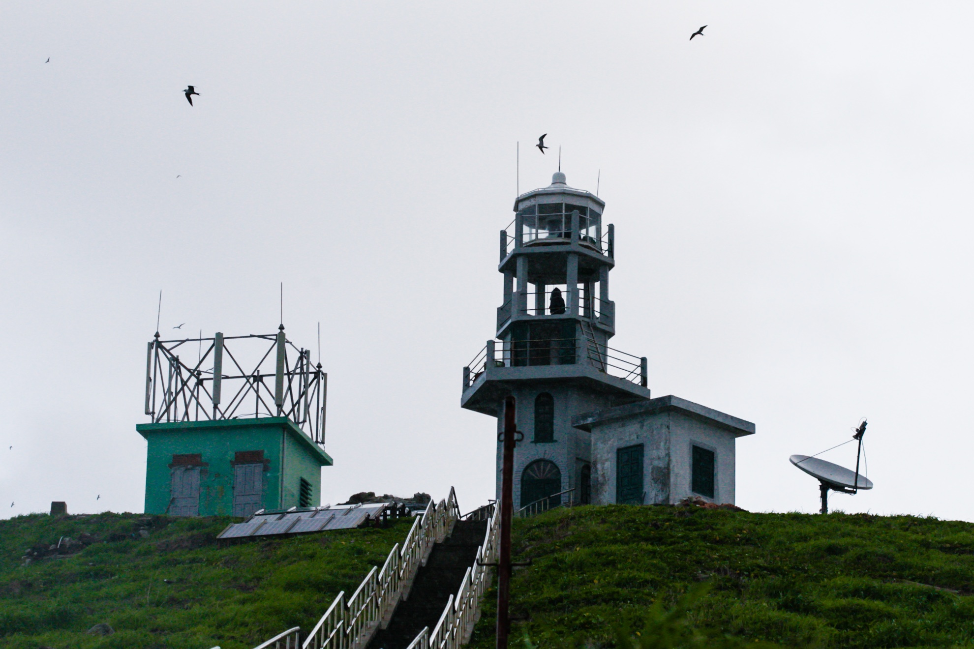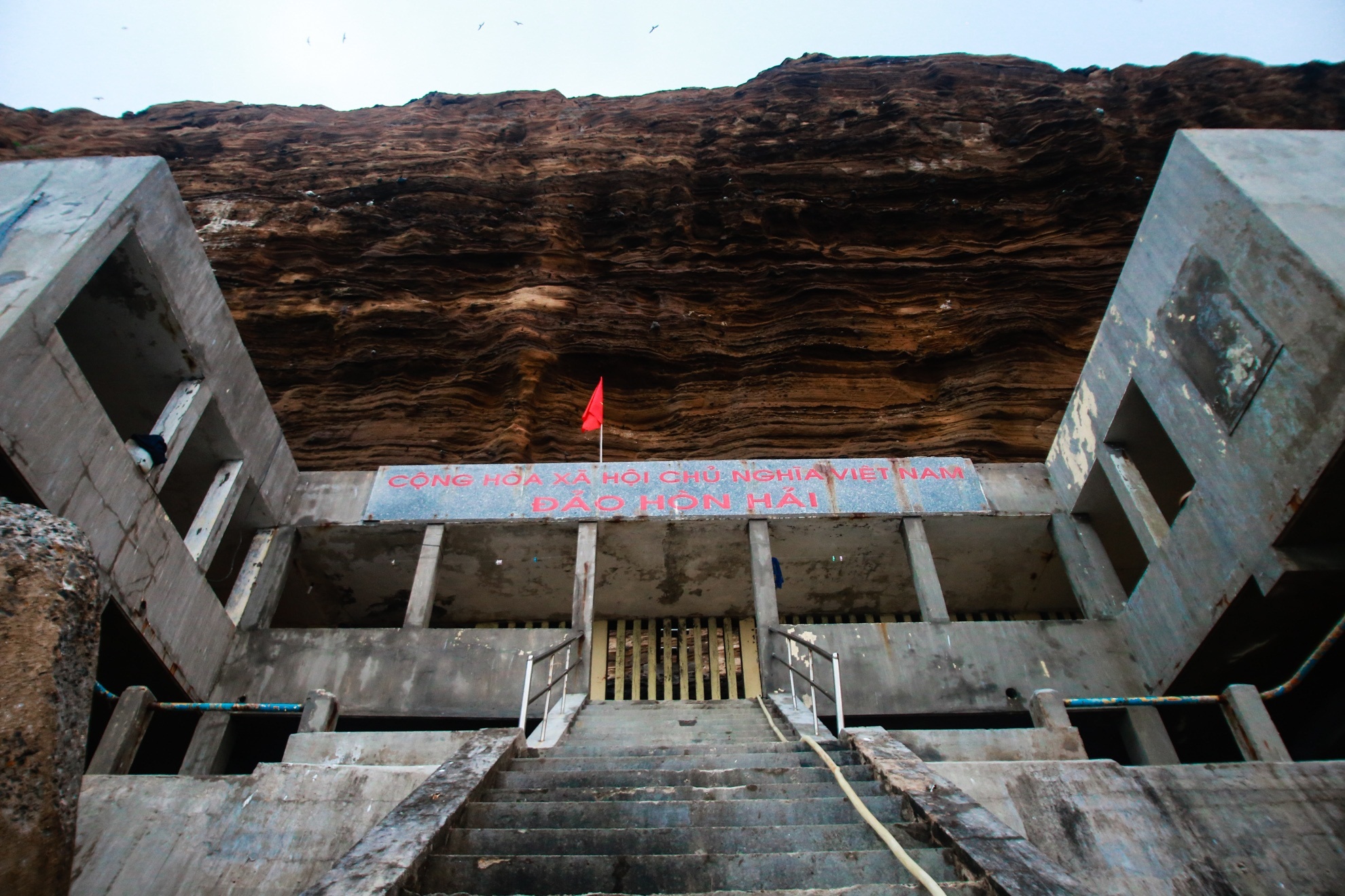 Từ miệng hầm đến bề mặt đảo có một hệ thống 240 bậc thang được đổ bê tông kiên cố nối lên tận chân hải đăng Hòn Hải.