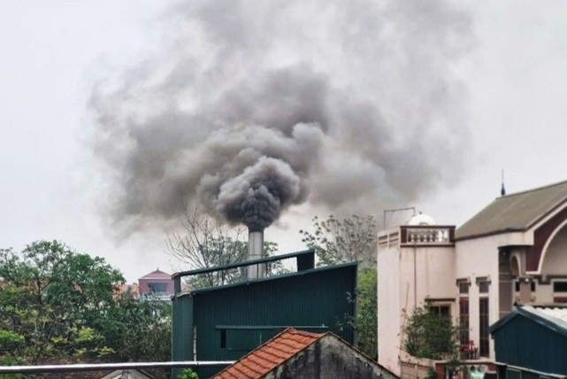 | Một cơ sở sản xuất tại xã Hoài Đức xả khói đen ra môi trường, gây ảnh hưởng xấu tới đời sống sinh hoạt của người dân khu vực. (Ảnh: Người dân cung cấp) |