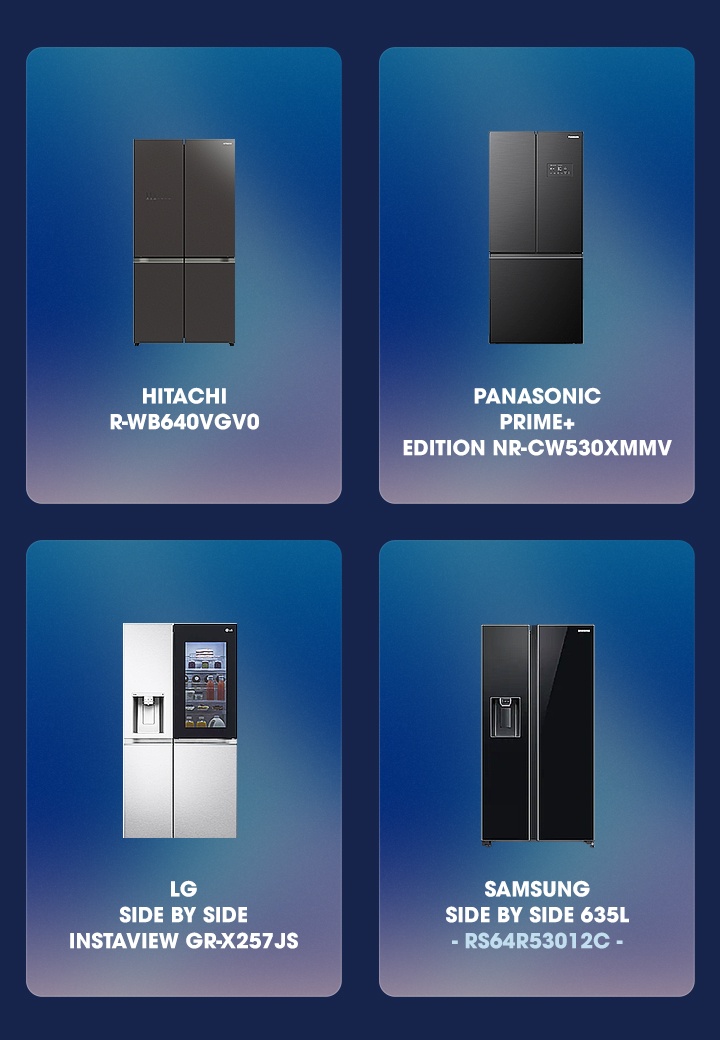 Cho hạng mục đề cử cuối cùng - tủ lạnh, 5 cái tên góp mặt trong danh sách gồm Hitachi R, Panasonic PRIME+ Edition, LG Side by Side InstaView, Samsung Side by Side. Các nhà sản xuất bổ sung cho tủ lạnh hiện đại nhiều tính năng thông minh, liên kết vào mạng lưới Internet để phục vụ khách hàng nhiều hơn.