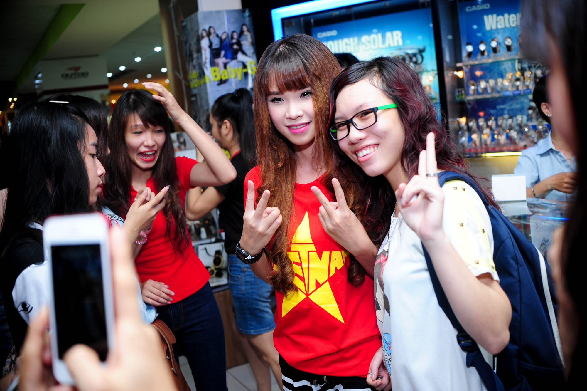 | Các fan vui sướng khi chụp ảnh kỷ niệm cùng với thần tượng trước khi ra về. |
