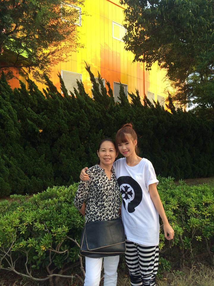 | Mặc dù có mẹ khó tính đi cùng nhưng bà có vẻ rất thoải mái khi con gái thân thiết với thành viên nhóm nhạc La Thăng. |