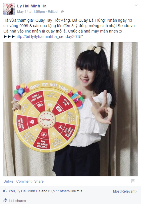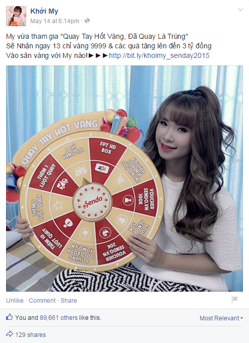 Để tham gia, người chơi chỉ cần đăng nhập vào Sendo.vn (chấp nhận hình thức đăng nhập từ tài khoản Facebook, Gmail) và bắt đầu quay số. Mỗi ngày, 1 chỉ vàng may mắn sẽ xuất hiện trên vòng quay. Quay liền tay, hốt ngay vàng không chỉ khiến các bạn trẻ thích thú mà ngay cả các sao như ca sĩ Khởi My, Kelvin Khánh hay vợ chồng Lý Hải, Minh Hà cũng hào hứng tham gia thử vận may.