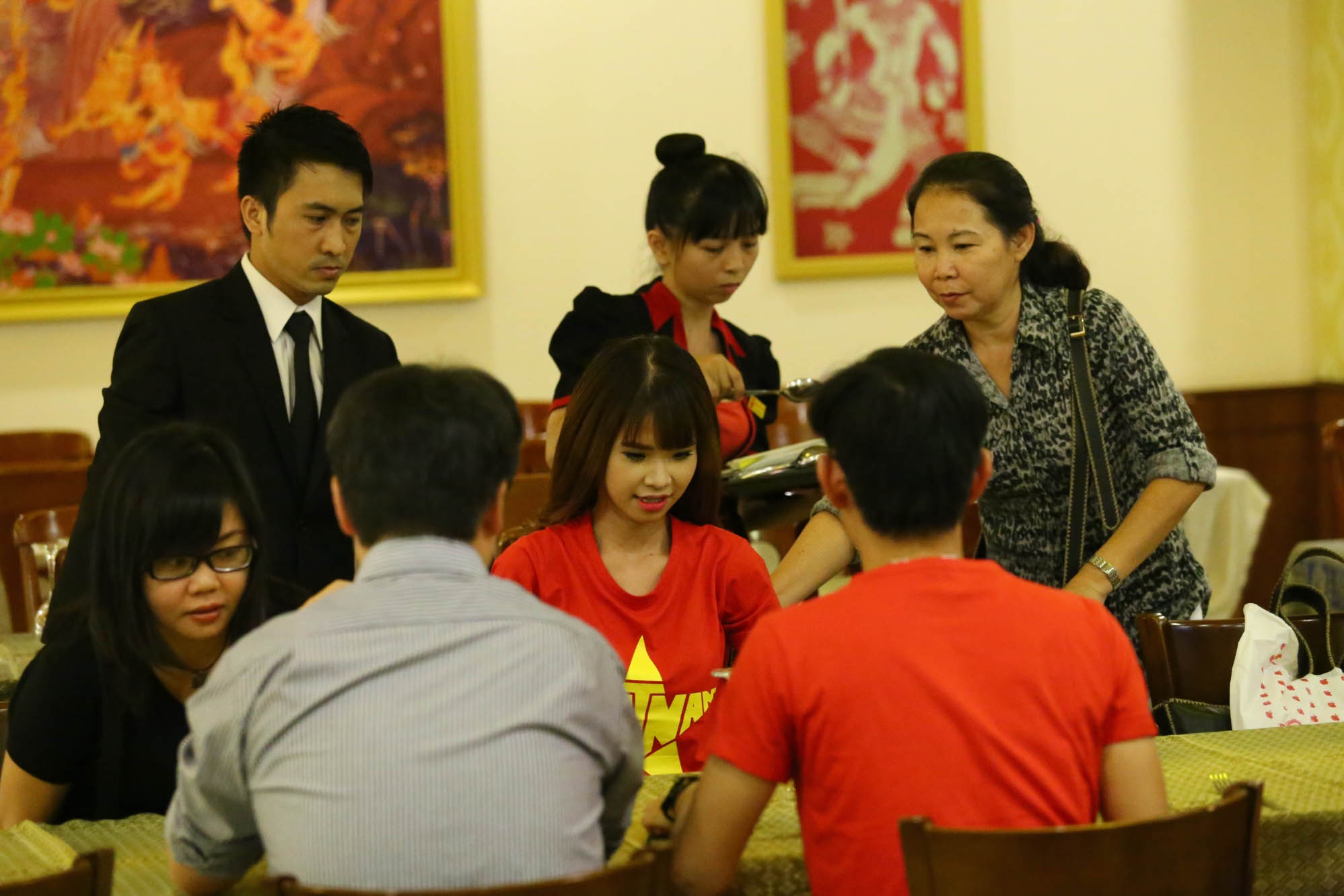 Sau khi hoàn thành công việc, mẹ con Khởi My và vài người bạn trong ê-kíp hỗ trợ rủ nhau đi ăn tại một quán cách đó không xa. Má Năm - cách những người thân thiết vẫn gọi mẹ Khởi My - tất bật giúp cô và bạn bè gọi món, thu xếp đồ đạc trước khi bắt đầu bữa ăn.