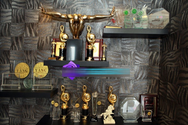 | Một góc riêng trưng bày những giải thưởng nam ca sĩ đạt được. |