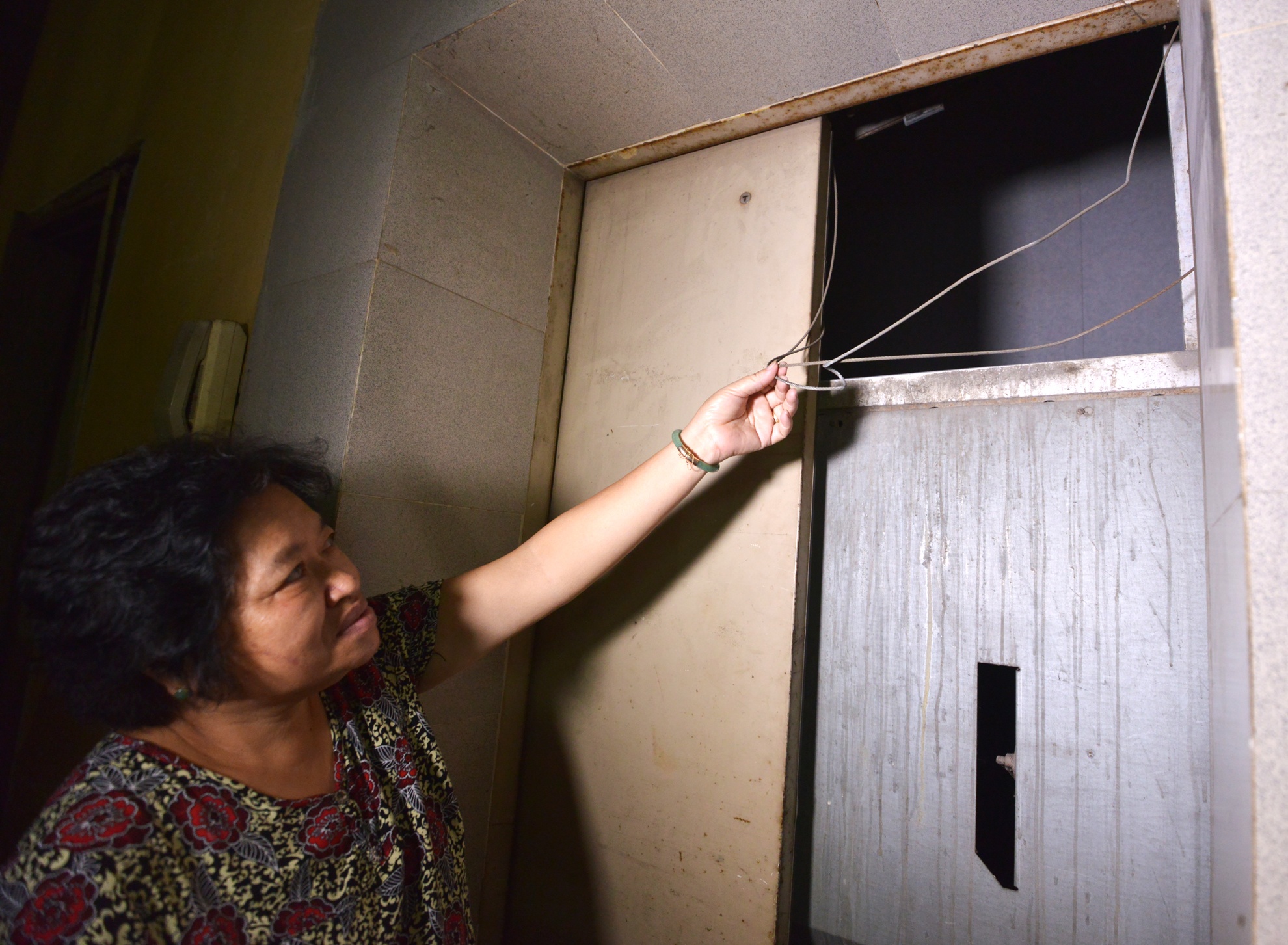 Người dân luôn phải thấp thỏm khi đi thang máy còn lại duy nhất bởi nó rất hay hỏng vặt, dễ nhốt người bên trong.