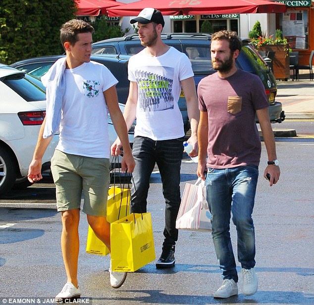 Sau đó, De Gea cùng hai đồng hương trong màu áo M.U, Juan Mata và Ander Herrera đi mua sắm ở cửa hàng Selfridges. Thủ môn 24 tuổi người Tây Ban Nha mua túi đồ khá lớn.