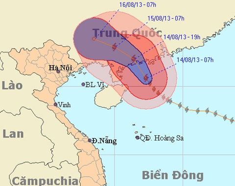 Như vậy, khoảng trưa và chiều nay (14/8), vùng tâm bão có khả năng đi vào đất liền phía Tây Nam tỉnh Quảng Đông (Trung Quốc). Đến 7h ngày 15/8, vị trí tâm bão ở vào khoảng 22,9 độ Vĩ Bắc; 110,0 độ Kinh Đông, trên đất liền phía Bắc bán đảo Lôi Châu (Trung Quốc). Sức gió mạnh nhất ở vùng gần tâm bão mạnh cấp 8 (tức là từ 62 đến 74 km/h), giật cấp 9, cấp 10.
