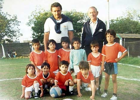 | Messi 5 tuổi, đứng thứ 2 từ bên phải vào. Vì mắc chứng bệnh còi xương nên Messi luôn thấp bé hơn các bạn cùng trang lứa. |