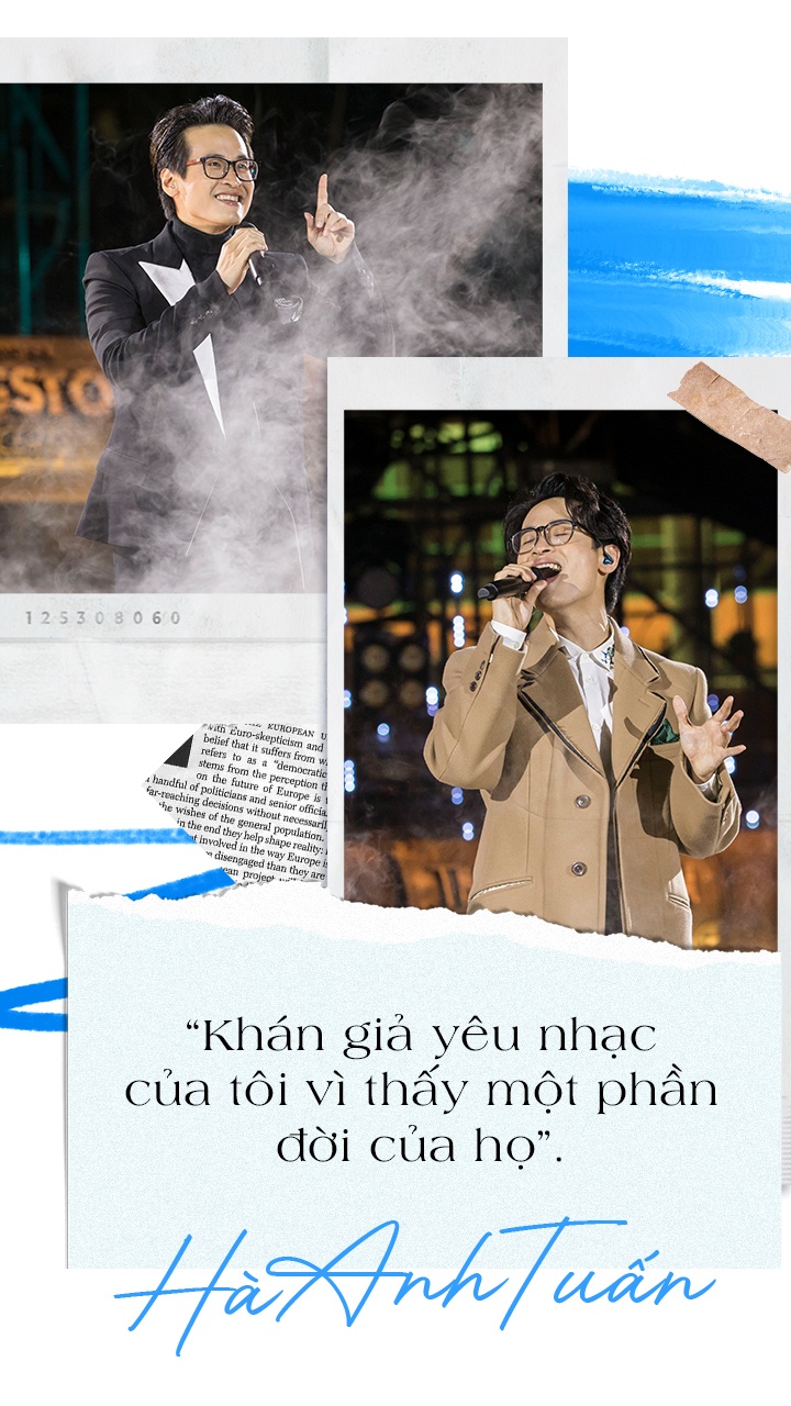 - Khán giả và cộng sự của tôi là những người yên lặng, sống cuộc đời khác nhau, nhưng khi tôi hát, họ sẽ xuất hiện cùng nhau. Mỗi người một vai trò tạo nên những khoảnh khắc độc nhất của thứ âm nhạc mang tên Hà Anh Tuấn. Họ là bạn quý, là tri kỷ và là điều giúp tôi tìm ra chính mình trong âm nhạc.