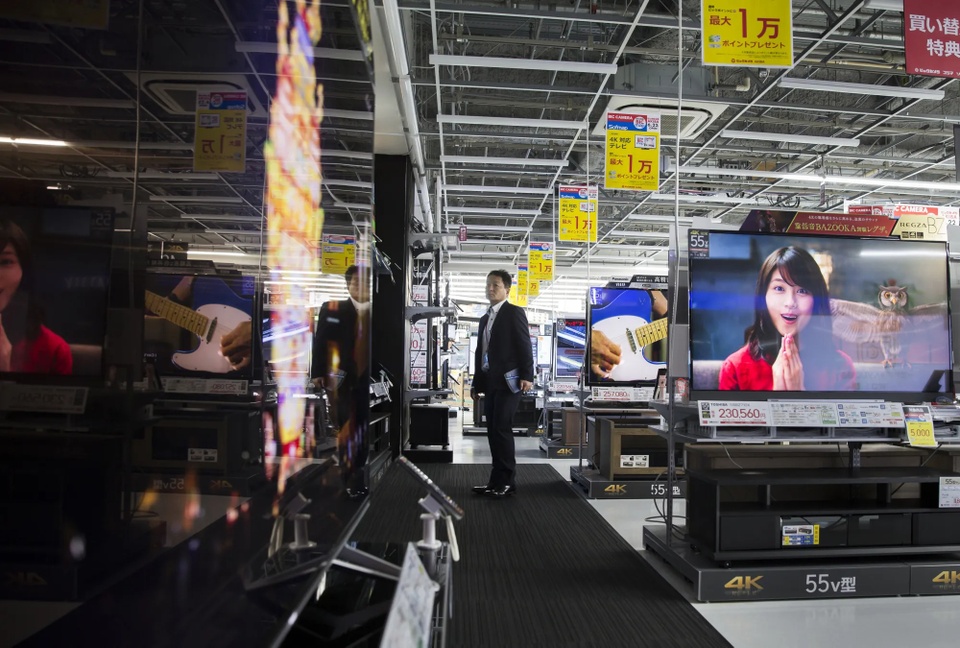Gian hàng TV ở một siêu thị điện máy Nhật Bản. Ảnh: Bloomberg. |