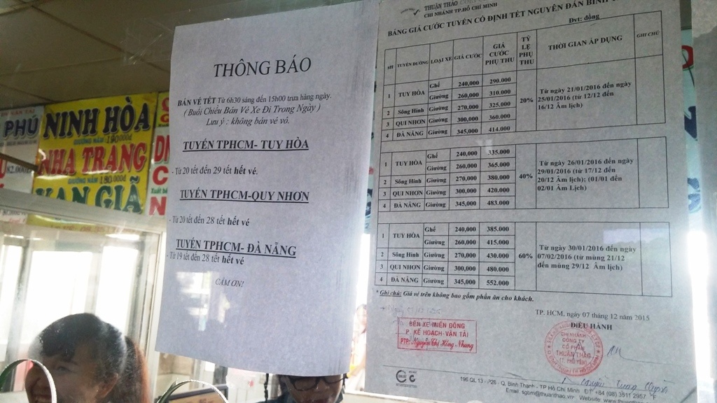 Ghi nhận tại Bến xe Miền Đông, nhiều doanh nghiệp có thương hiệu như Chín Nghĩa, Thuận Thảo… đã treo thông báo hết vé trong các ngày cao điểm 20 - 28 tháng Chạp. Từ nay đến Tết Nguyên đán còn hơn một tháng nên chưa xảy ra tình trạng chen lấn, tranh mua.