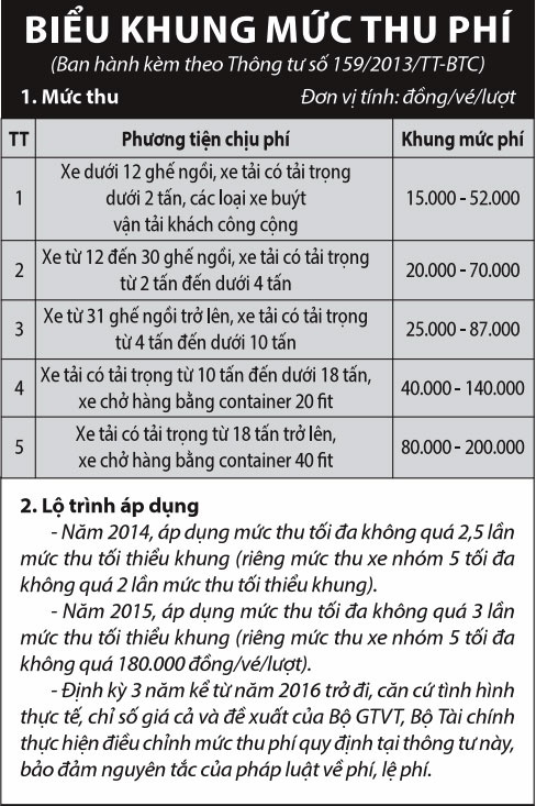 Khi thay đổi mức thu phí, Bộ GTVT cùng với Bộ Tài chính đã tính toán mức thu nhập tại thời điểm hiện nay. Thông tư 159 cũng đã đưa ra một lộ trình để tăng phí phù hợp. Thời điểm hiện nay điều chỉnh tăng phí so với mức Thông tư 90 trước đây 10 năm là cần thiết.
