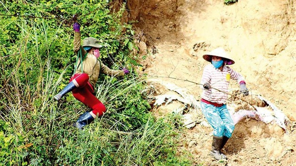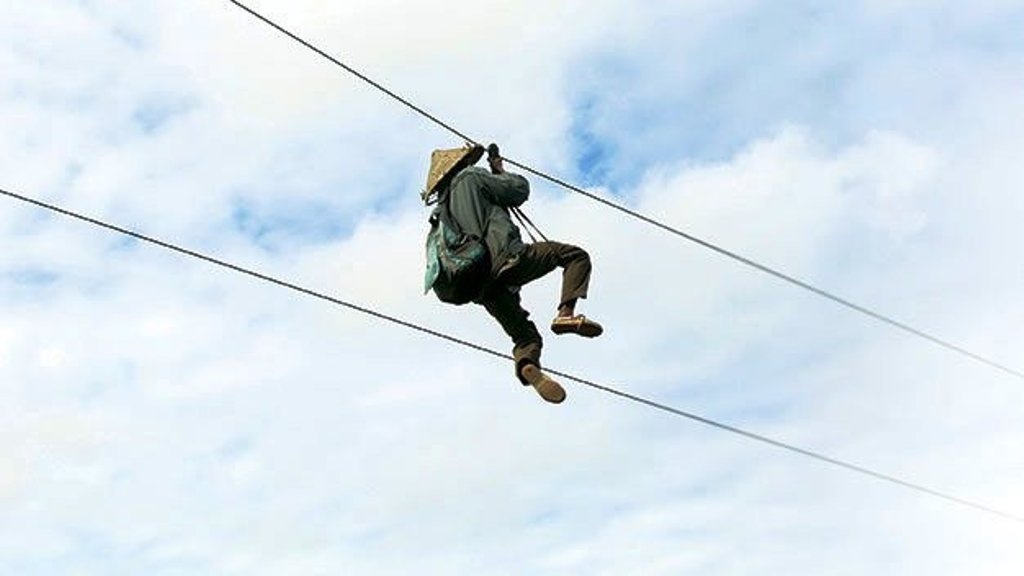 | Ông Thu bảo: “Không đu dây thì biết đi bằng gì? Qua sông bằng cách đu dây nguy hiểm thật, nhưng không qua thì đói”! Đơn giản bởi họ sống bên này sông, còn bên kia là hàng trăm hecta đất canh tác, phải đi - về làm rẫy, vận chuyển lương thực, sản vật trồng được. Trong ảnh: Giải cứu một phụ nữ bị mắc kẹt khi trượt cáp sang sông... Những tai nạn như thế này thỉnh thoảng vẫn xảy ra. |