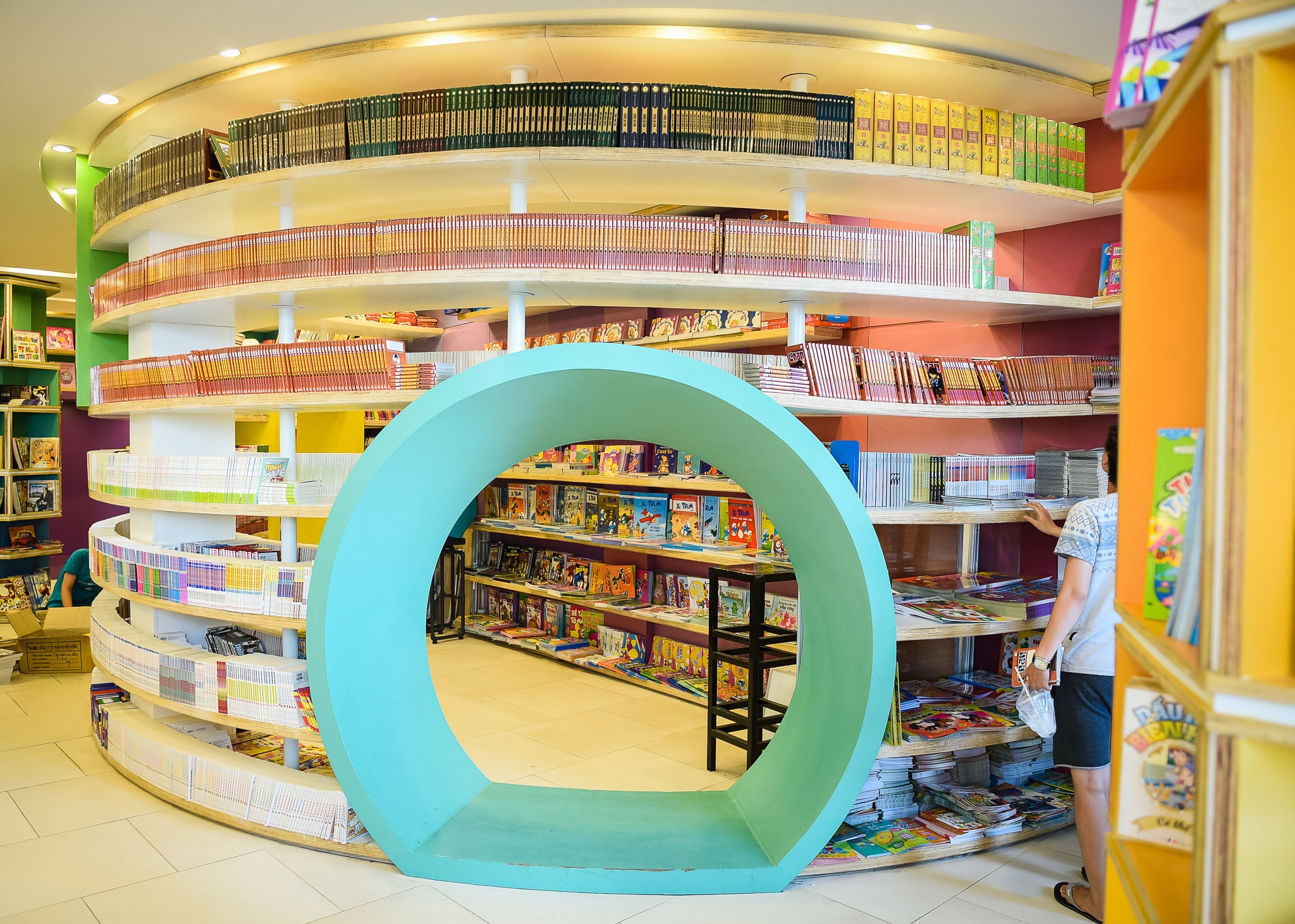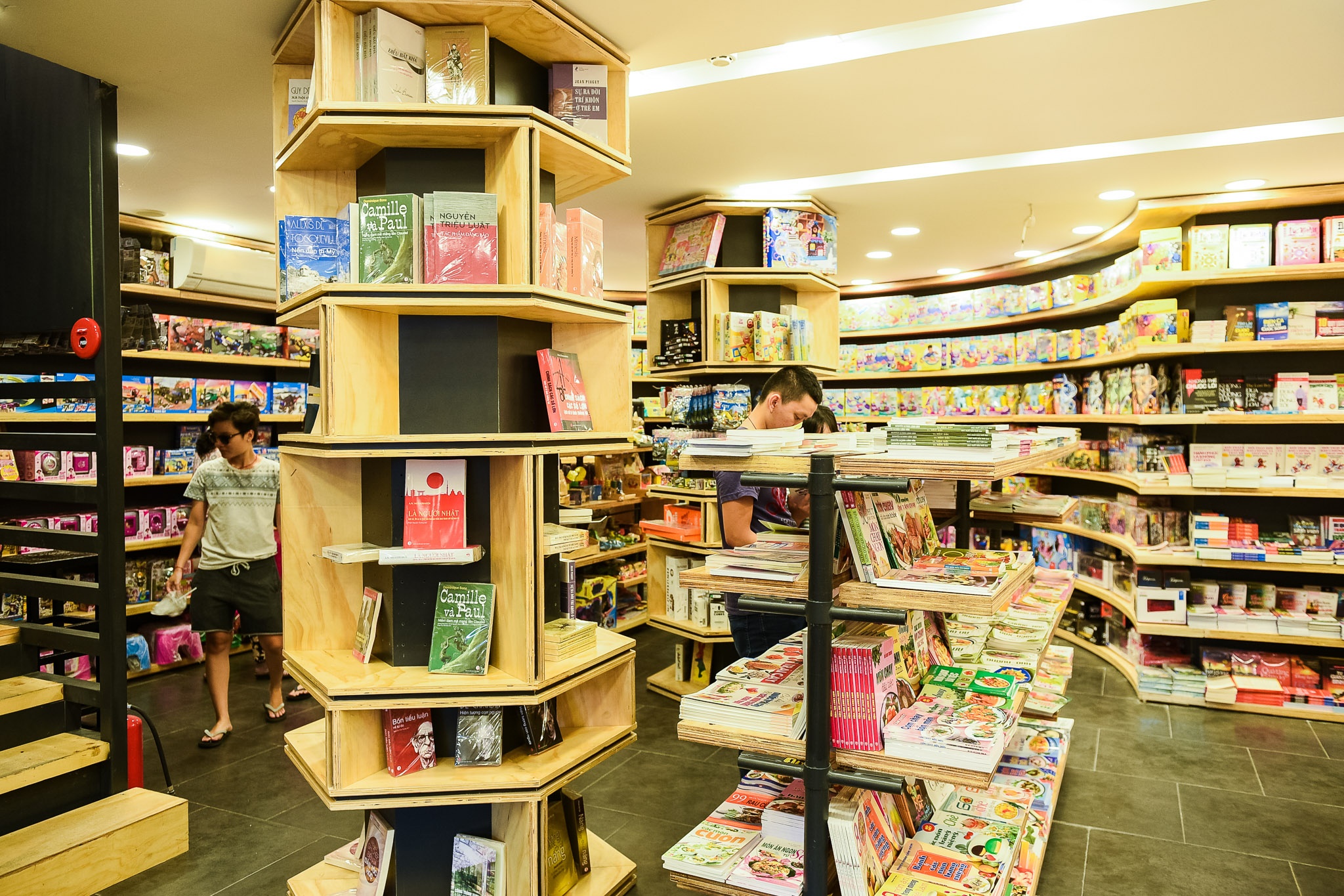 | Cụ thể, tầng trệt là sách quốc văn, gồm hàng ngàn đầu tiểu thuyết, truyện ngắn, tạp văn. Không gian tầng 1 dành cho quà lưu niệm. Tầng 2 là sách thiếu nhi. Điểm nhấn giữa các giá là khoảng trống dành cho khách muốn ngồi đọc sách tại chỗ, được tô điểm bằng màu sắc nổi bật. |