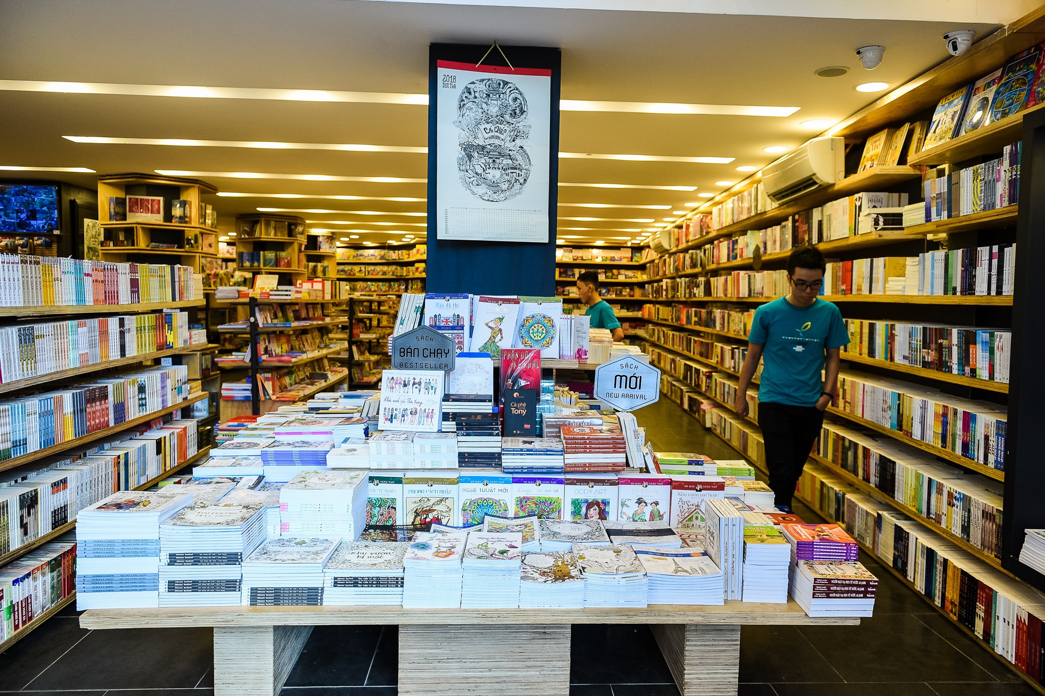 | Tọa lạc trên con đường sách Nguyễn Thị Minh Khai, Cá chép 2 thu hút người yêu sách nhờ không gian rộng với diện tích sàn 750 m2, số lượng tác phẩm phong phú lên tới hơn 20.000 cuốn. |
