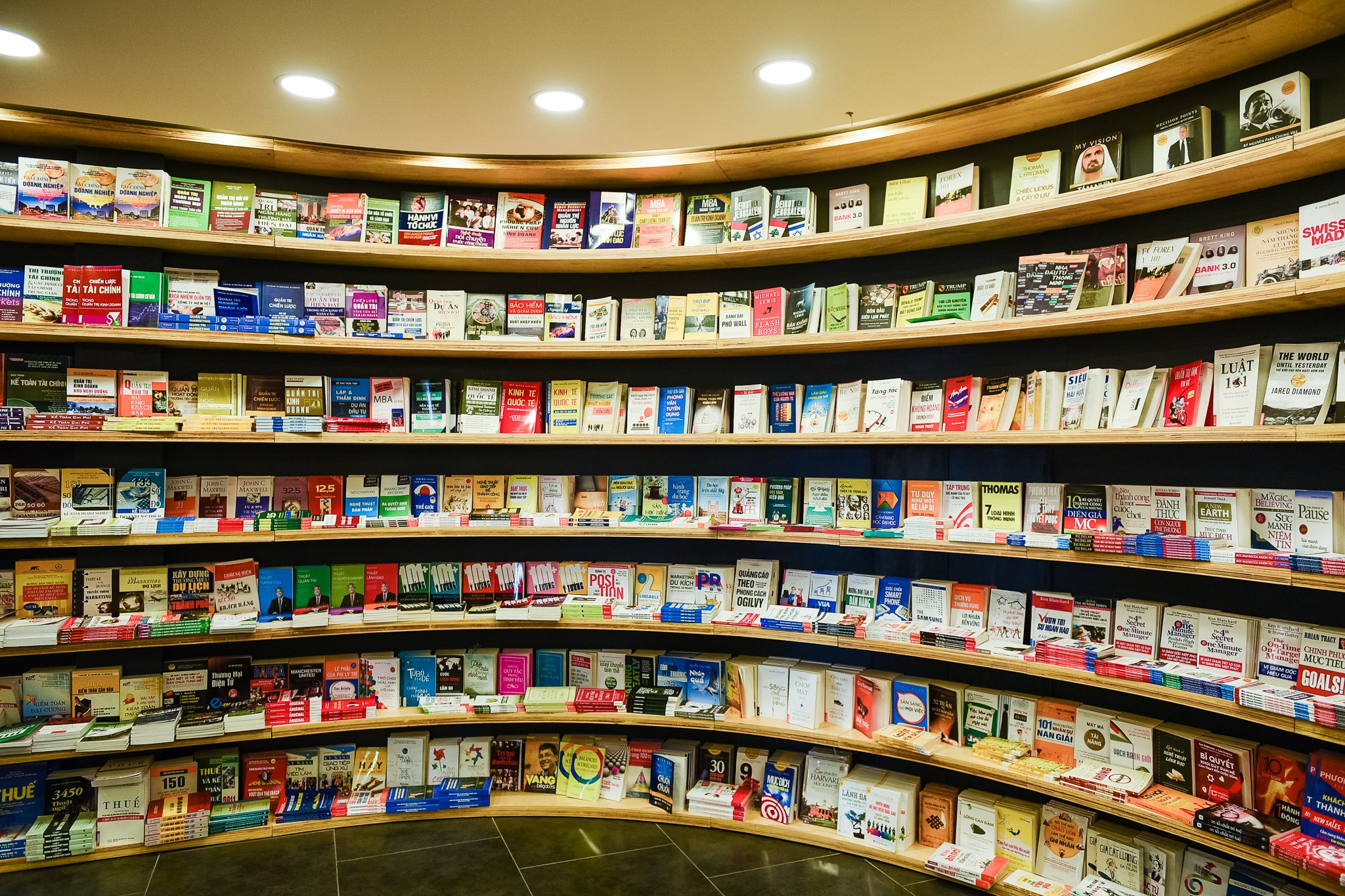 | Những cuốn sách được trưng bày đẹp mắt trên kệ. |