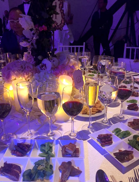 | Cận cảnh bàn tiệc. MC chương trình Trương Đại Đại cho biết, bữa tiệc sẽ có đầy đủ các loại cocktail trên thế giới để phục vụ khách mời. |