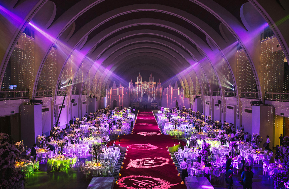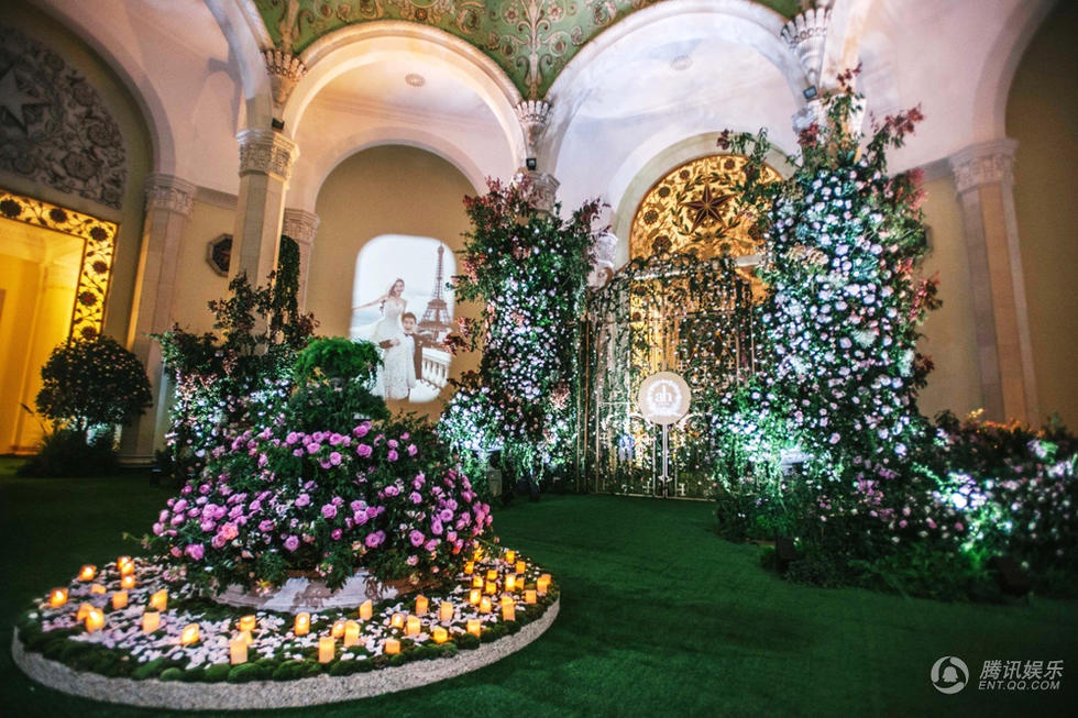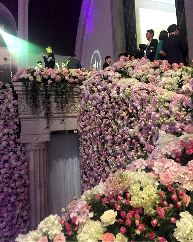 | Cặp đôi đã chi bộn tiền để biến không gian bên trong Trung tâm triển lãm Thượng Hải thành một khu vườn cổ tích. |