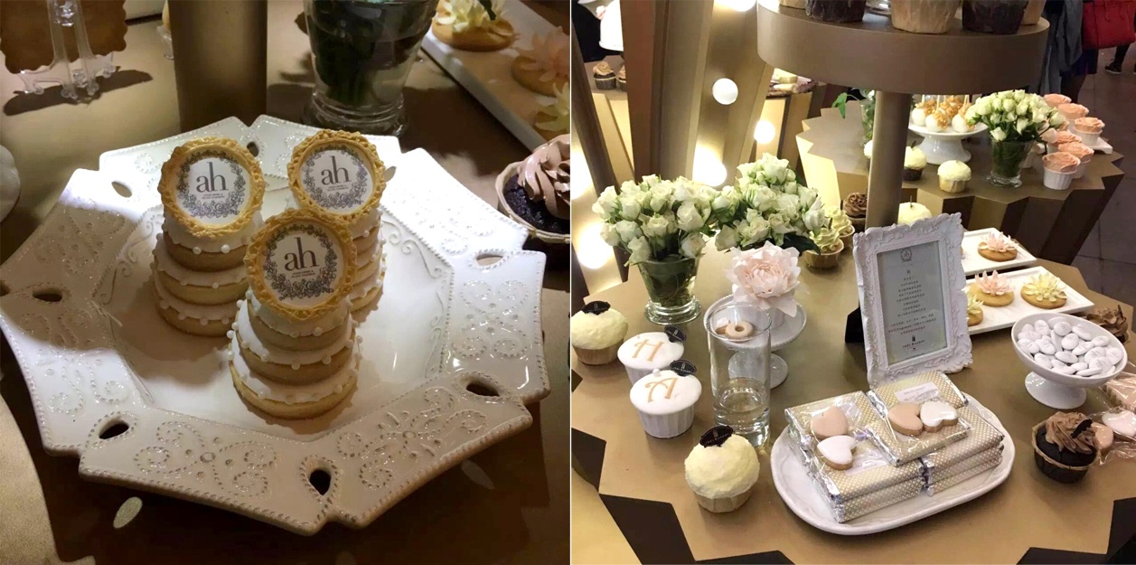 | Những chiếc bánh được in dòng chữ "ah" - 2 chữ cái viết tắt từ tên Angelababy và Huỳnh Hiểu Minh. |