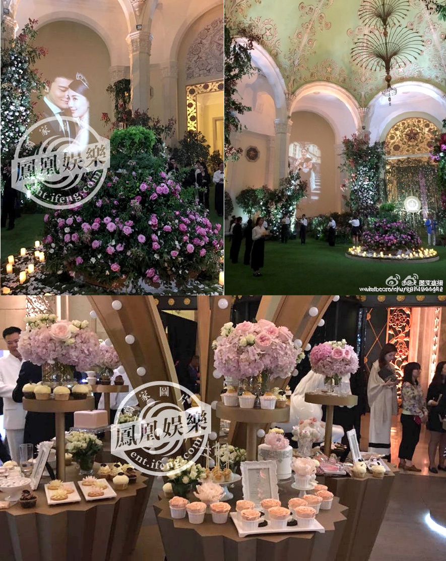 | Ảnh cưới của Huỳnh Hiểu Minh - Angelababy được trình chiếu thẳng trên tường. |