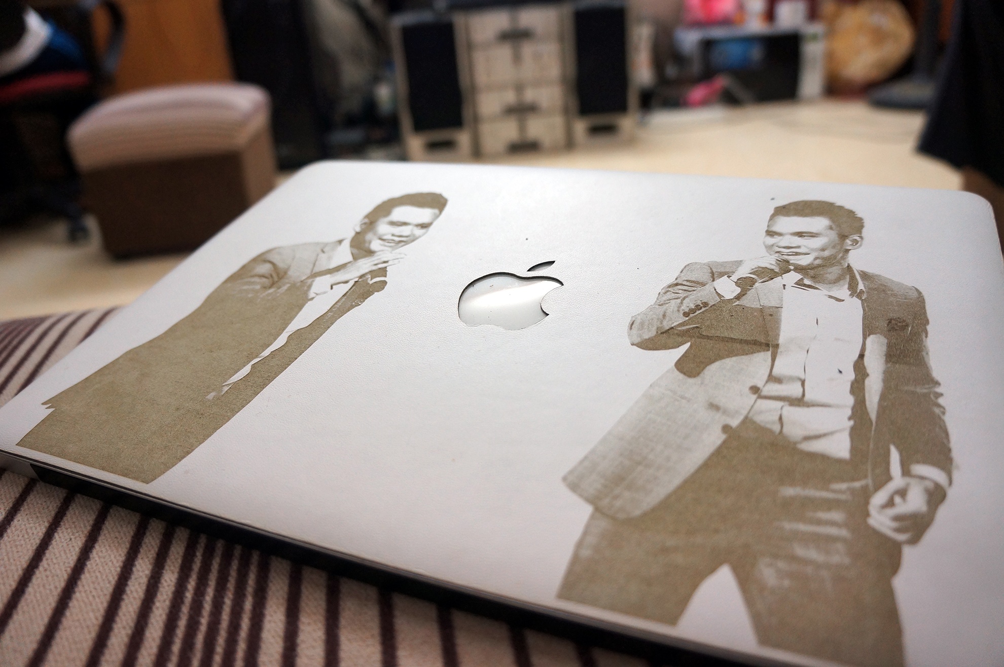 | Chiếc Macbook có in hình Khắc Việt bên ngoài. Hiện, anh tất bật chạy show tại các tỉnh thành phía Bắc. Ngoài ca hát, nam ca sĩ cũng đang gấp rút chuẩn bị cho việc khai trương quán bar tại TP HCM vào tháng 6. Tháng 10 năm nay, Khắc Việt chung vốn cùng vài người bạn để mở nhà hàng. |