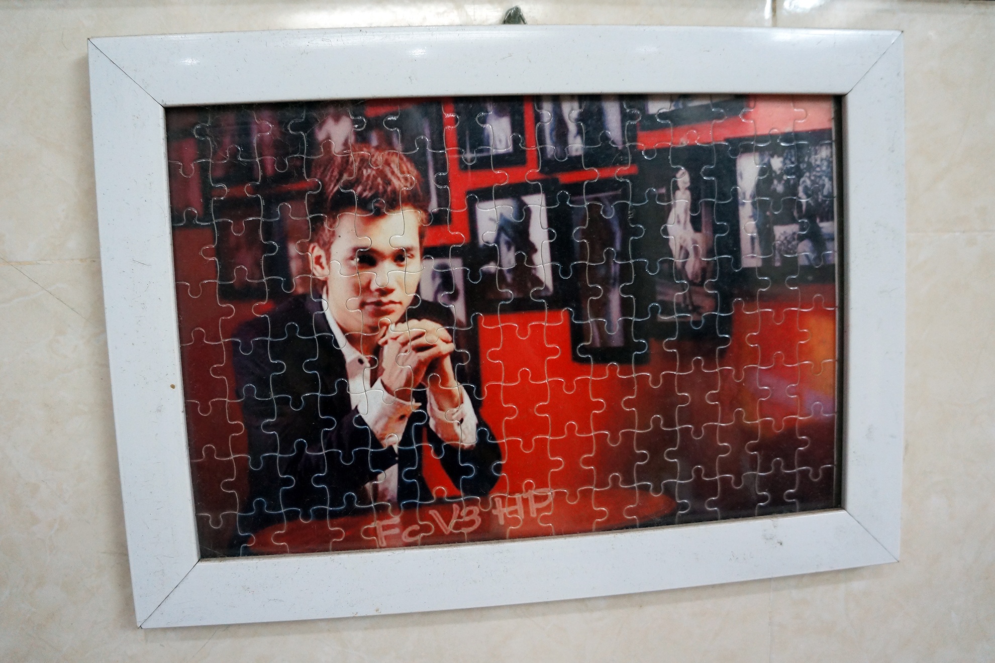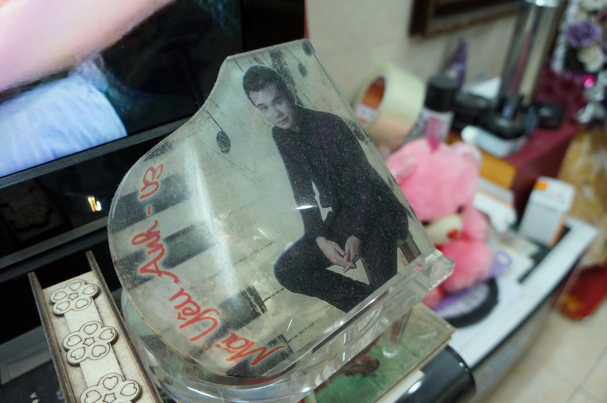 | Bức ảnh ghép có in hình Khắc Việt do các khán giả tặng anh trong một lần đi diễn. |