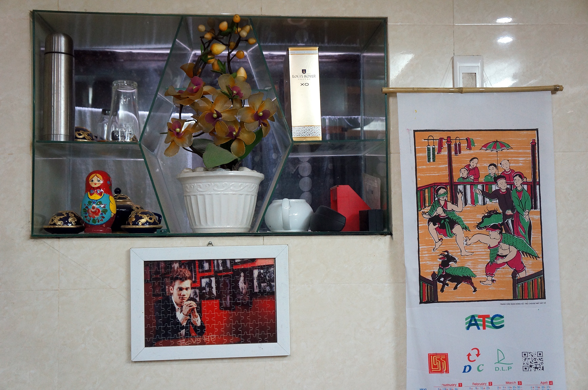 | Vì không gian nhỏ nên mọi góc tường đều được Khắc Việt tận dụng làm nơi bày đồ trang trí cũng như những món quà kỷ niệm của khán giả. Sắp tới, anh dự định mua một căn hộ chung cư khang trang hơn để cả nhà dọn về sống. |
