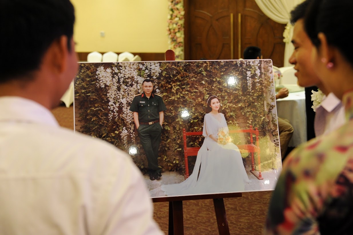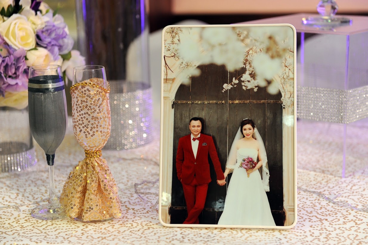 | Hôn lễ của cặp đôi được tổ chức tại một trung tâm tiệc cưới ở Hà Nội. Vốn là người kín tiếng, Tự Long khiến người hâm mộ và truyền thông bất ngờ khi tái hôn. |
