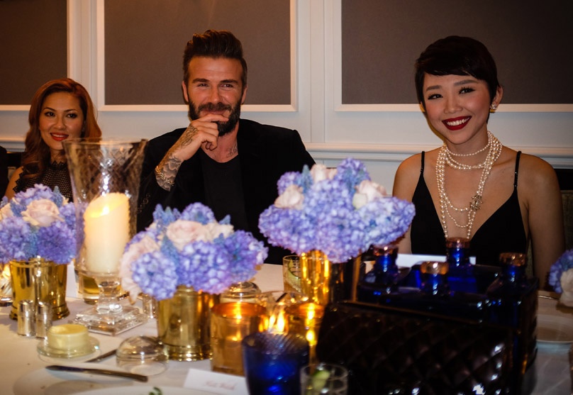 | Tại sự kiện, David Beckham cùng vợ đã tiếp đón loạt sao hàng đầu châu Á. Trong đó có sự góp mặt của Tóc Tiên, Hồ Ngọc Hà đến từ Việt Nam, diễn viên Kate Walsh (Mỹ), Tracy Phillips & Benjamin Kheng (Singapore)... |